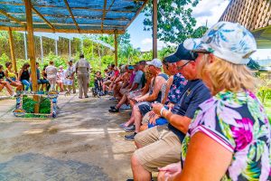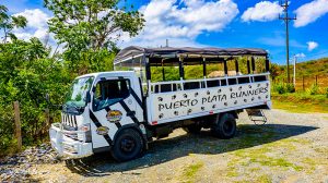 Hop on an open-air safari truck and immerse yourself in the Dominican countryside. We begin our day with a visit to Monkey Land. In the tropical jungle, listen to the sounds of nature while keeping an eye out for the cute little squirrel monkeys that abound in this natural environment. Trained staff give you a plate of fruit that you can offer to the monkeys. These cheeky, friendly creatures love shiny objects — hang on to your belongings or they will relieve you of loose items for later play. This is an awesome opportunity to get up close with these loveable, fun little monkeys.