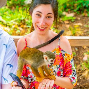 A must do for any nature lover, get the unique chance to see a family of squirrel monkeys eating right from a fruit bowl in your hands.
