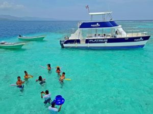 The catamaran takes you through the fantastic desert island “Cayo Paraíso”, in the middle of the ocean; with white sand, and a natural pool with crystal clear water. Snorkeling at Paradise Island offers a truly immersive experience due to several factors: