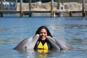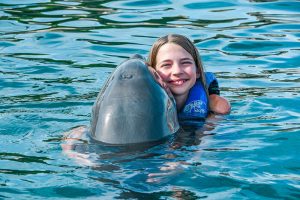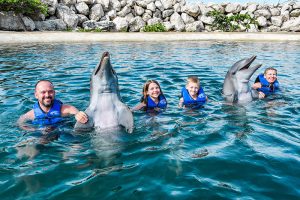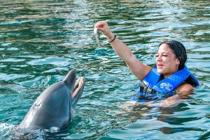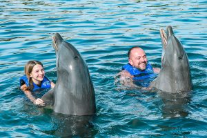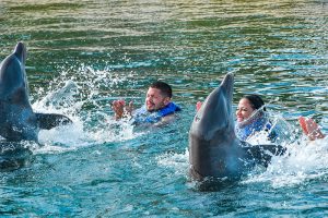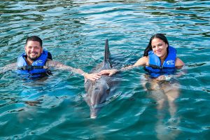 Swim up close and personal with 2 playful dolphins in this VIP adventure. Your experience begins with a brief lecture to learn about these wonderful sea creatures. Then hop on to receive a kiss, a hug and enjoy an amazing ride through the lagoon on top of a boogie board, amazing memories to last forever. During your visit snorkel in a coral reef aquarium, feed lovebirds and enjoy a handful of activities at no additional cost.