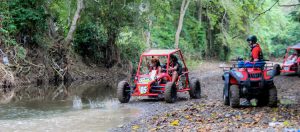 Looking for more MEGA ADVENTURES on your vacation? This super SPLASHING tour will Guarantee that!! All aboard the Mega Tiger Trucks! Feel the exciting adventure of this tropical paradise on the all-terrain two-person Buggies! Experience some of the exhilarating Damajagua waterfalls as we swim and waterslide into the Cooling mountain water lagoons, and for the adrenaline seekers, get ready to rock jump into the pools! Delicious Dominican homemade food, organic fruit from our farm, and soft drinks are included. Feel the Eco- Adrenaline!!